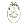 Gold outline of a wedding favor bag with a bow on top, containing the text "EST. 2025 The Digital Vows Wedding Content Creation" on a black background.